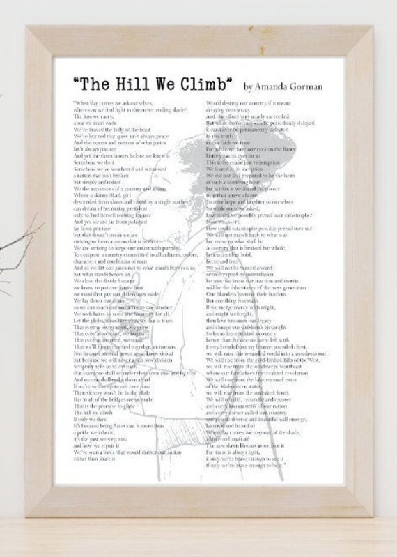 Presidential inauguration with the 22-year-old reciting her poem The Hill We Climb after Joe Biden and Kamala Har. Weve learned that quiet isnt always peace and the norms and notions of what just is isnt always justice. The instant 1 New York Times bestseller and 1 USA Today bestseller Amanda Gormans electrifying and historic poem The Hill We Climb read at President Joe Bidens inauguration is now available as a collectible gift edition.